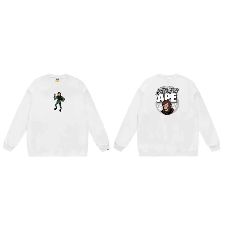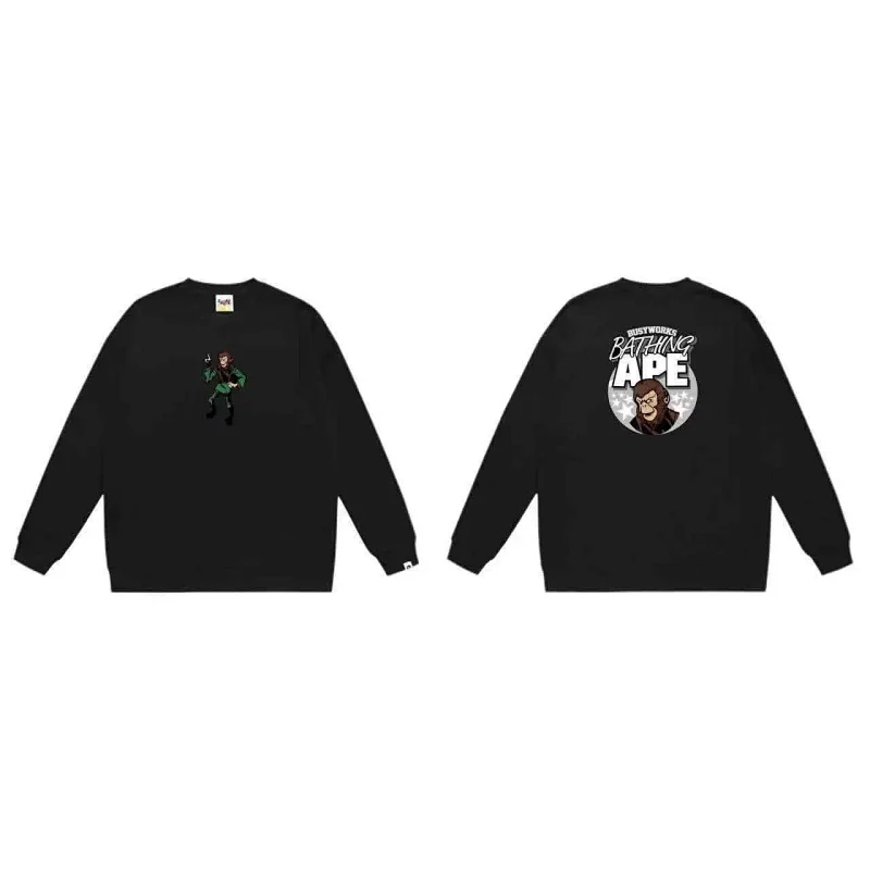 A BATHING APE BAPE Letter Embossed Crew Neck Pullover Sweatshirt-5146