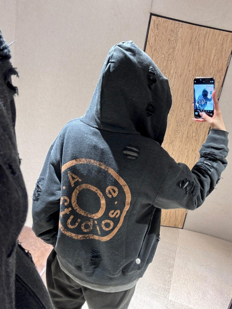 Acne Studios new zip-up distressed and ripped hooded sweatshirt-5445