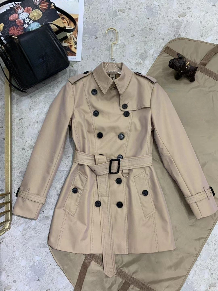 Burberry fitted double-breasted short trench coat with a cinched waist-5342