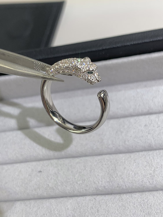 Cartier micro-inlaid half diamond leopard ring-3670