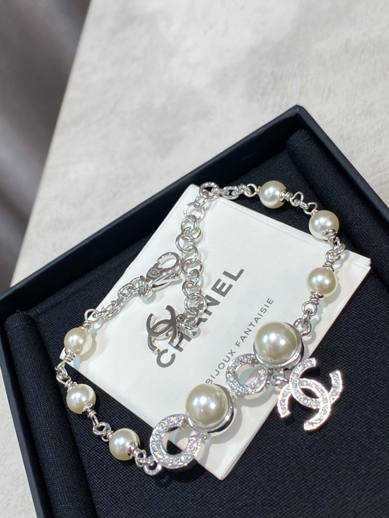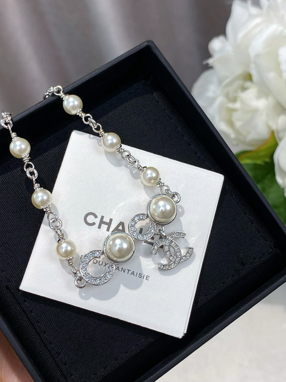 Home > Chanel Double C Rhinestone Pearl Bracelet-3834