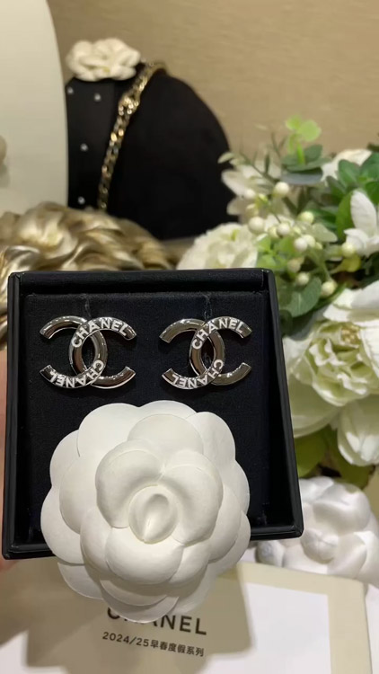 Chanel White Enamel Double C Silver Earrings-3743