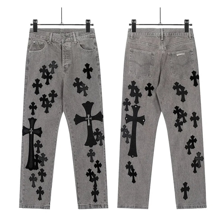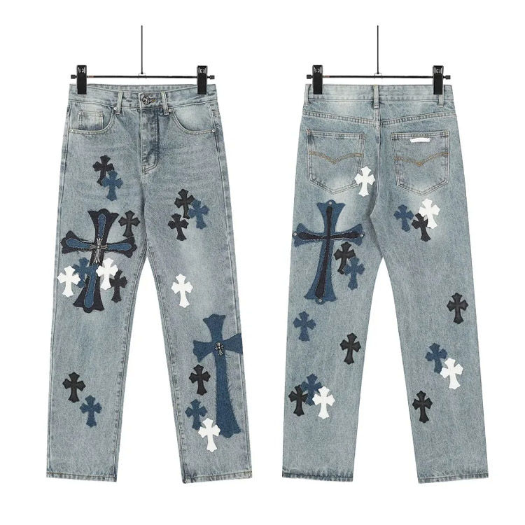 Chrome Hearts CH Appliqué Embroidered Washed Loose-fitting Jeans-4939