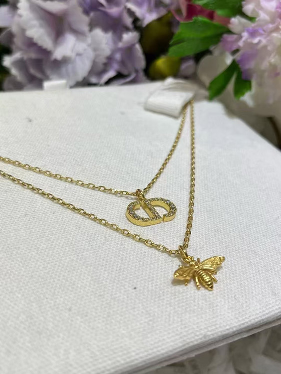 Home > Dior gold diamond bee pendant double necklace-3706