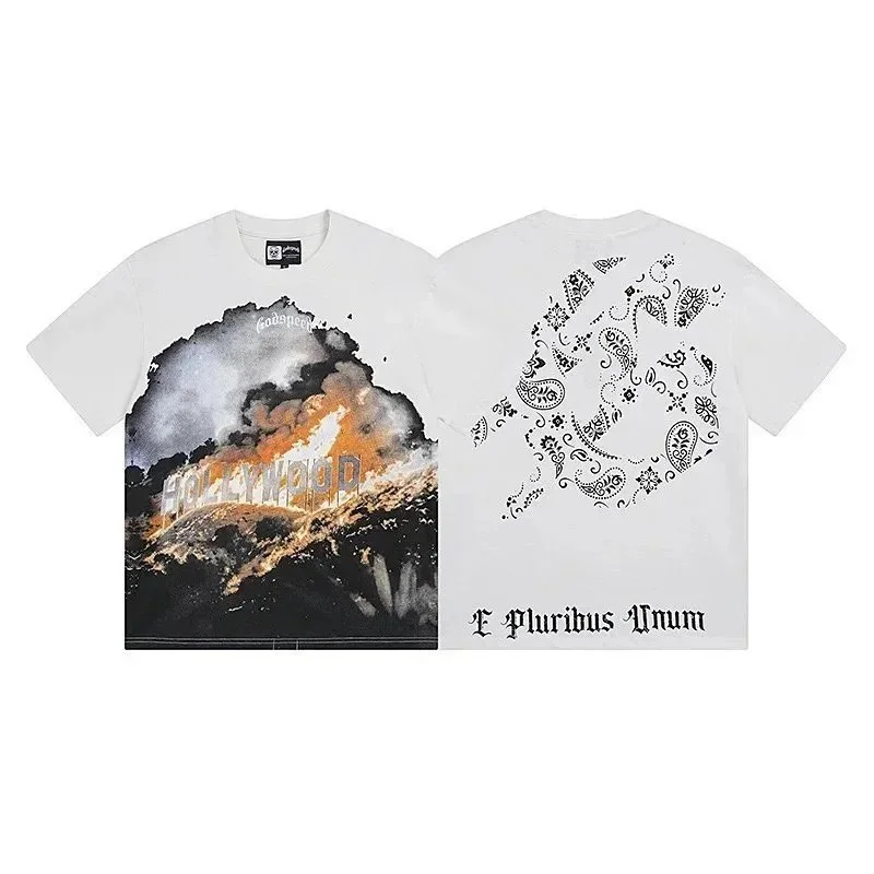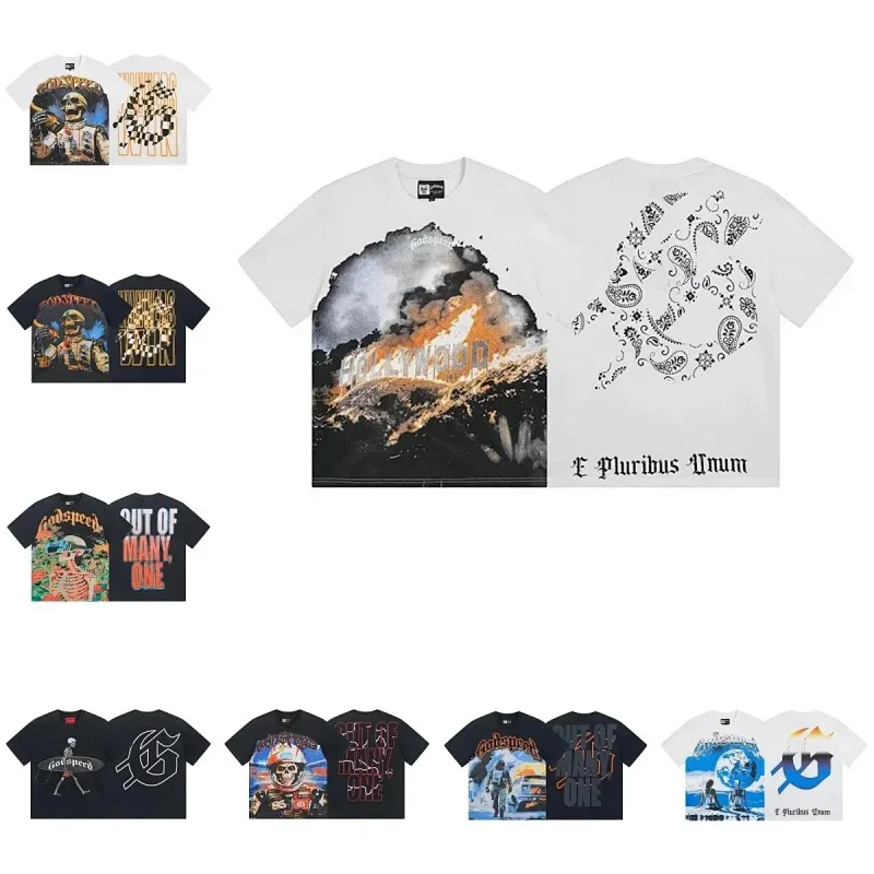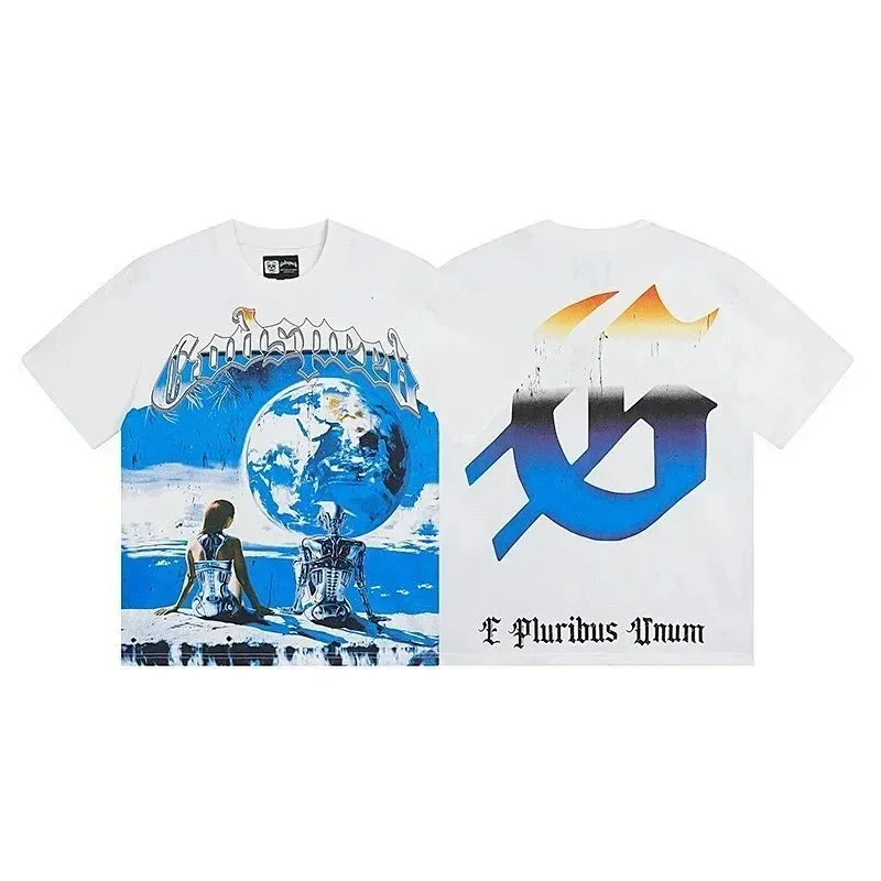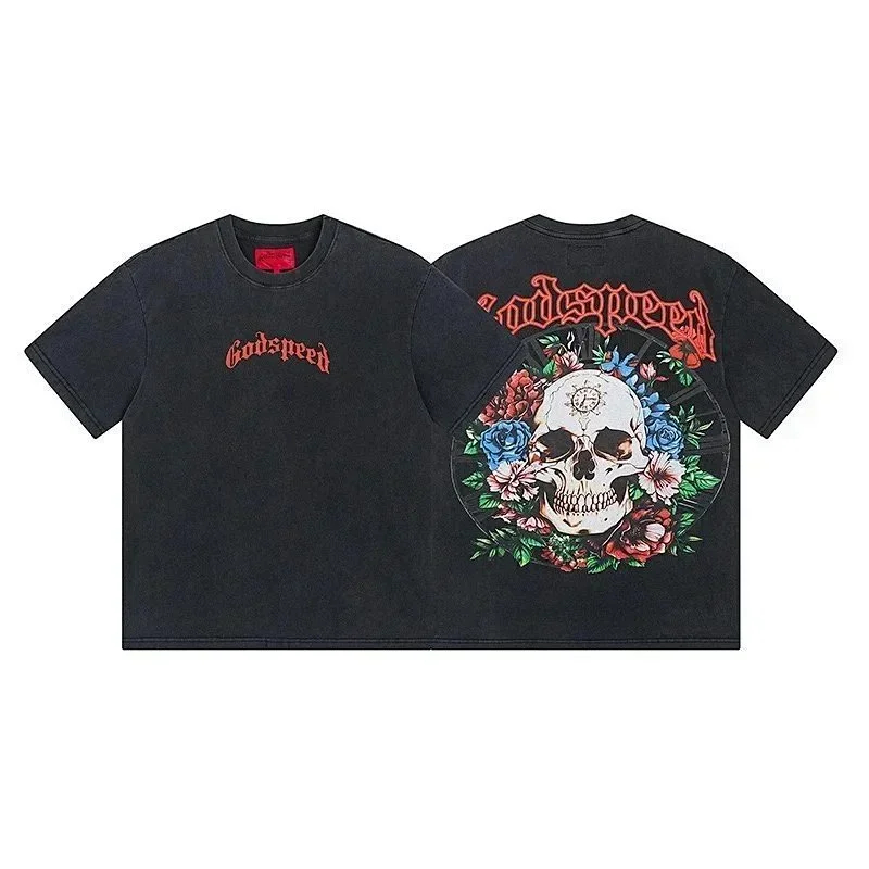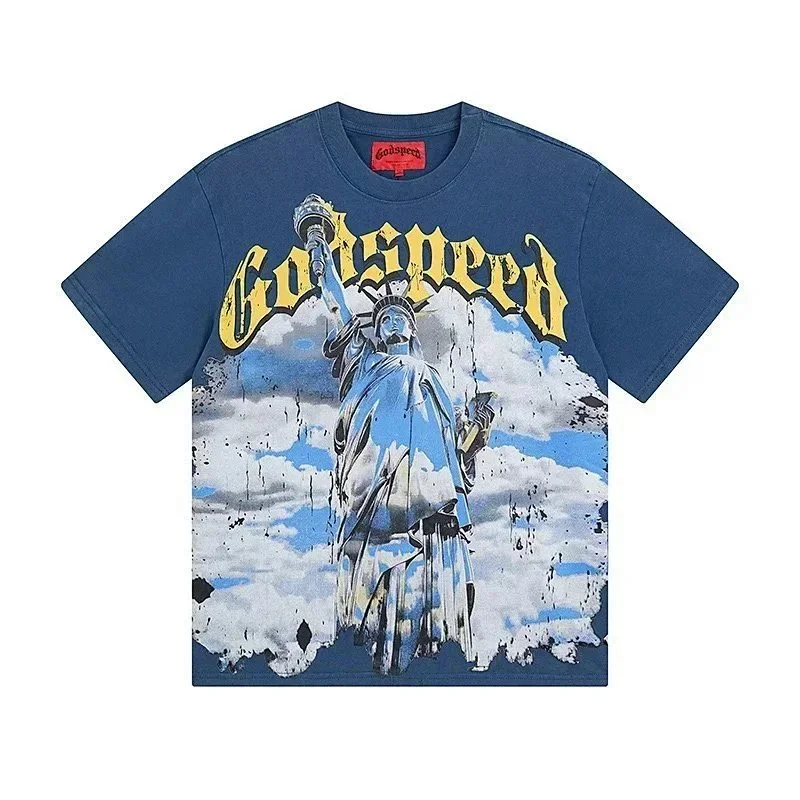 Godspeed letter print loose couple pure cotton round neck short sleeve T-shirt-1979