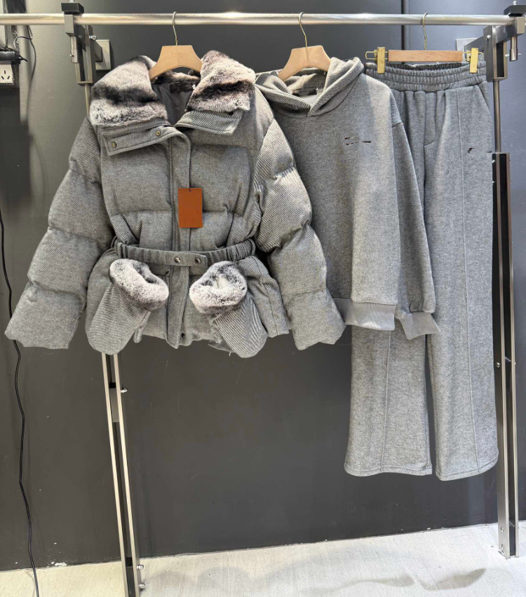 Loro Piana new four-piece suit with fur collar and waist belt-5382
