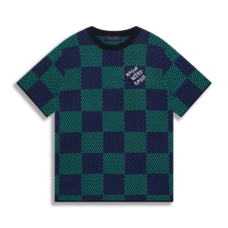 Louis Vuitton LV knitted checkerboard pattern letter jacquard casual loose short-sleeved T-shirt-5308