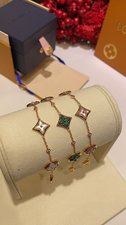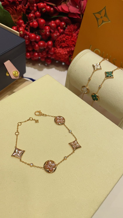 Home > Louis Vuitton LV Pink Mother-of-Pearl Floral Four-Leaf Clover Rose Gold Bracelet-3728