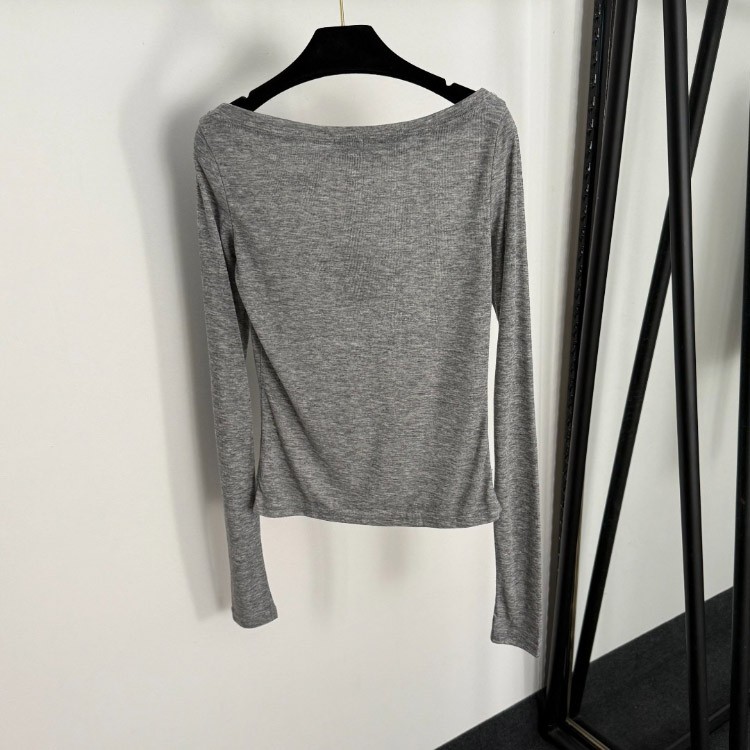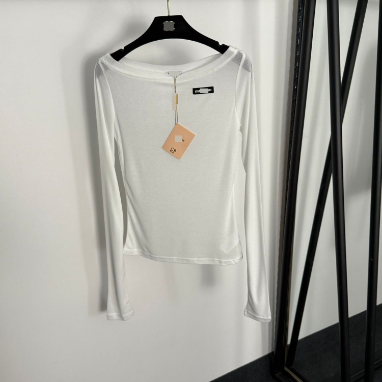 Miu Miu off-the-shoulder thin long-sleeved T-shirt-5413