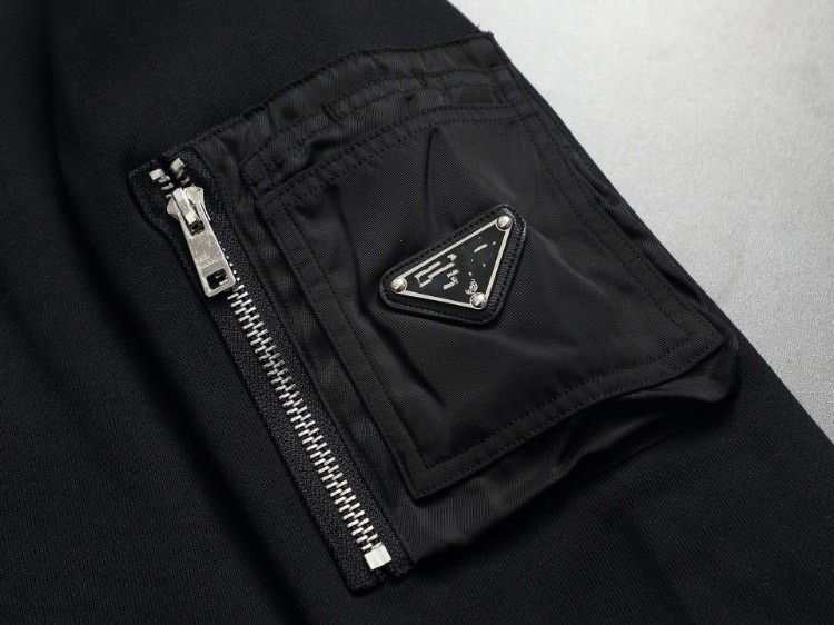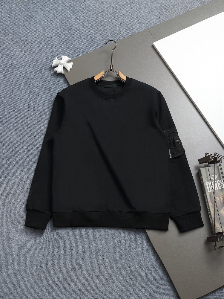 Prada new loose-fitting sweatshirt with zippered sleeve pockets and metal triangle logo-5323