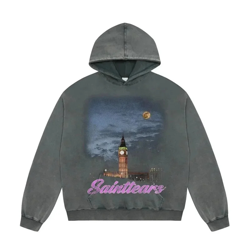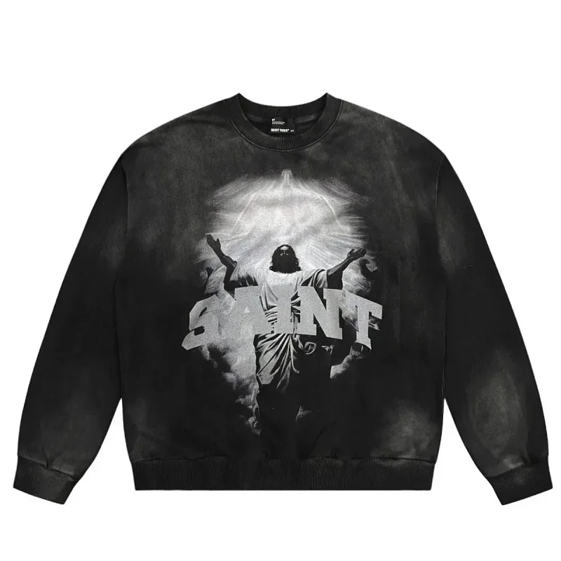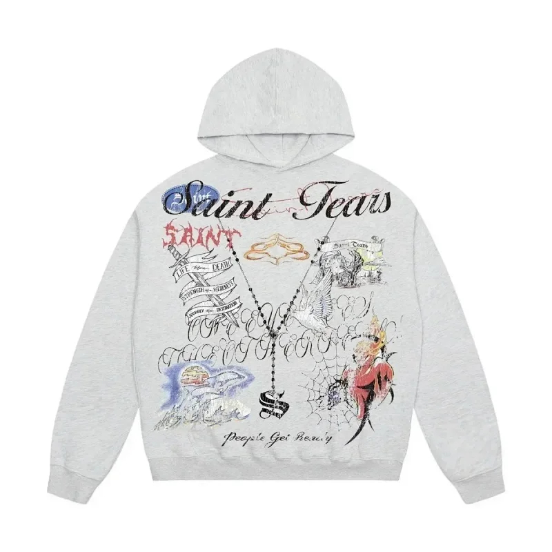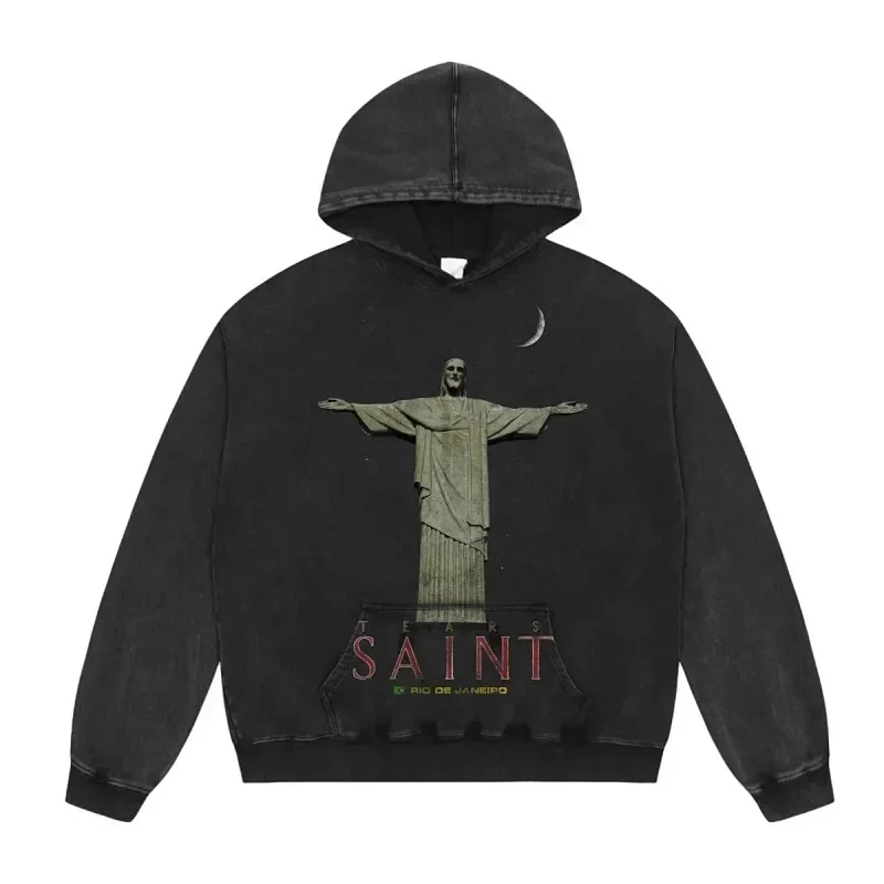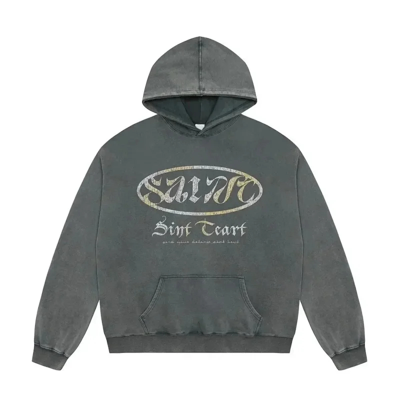 Saint Michael Simple casual loose long-sleeved hooded sweatshirt-2562