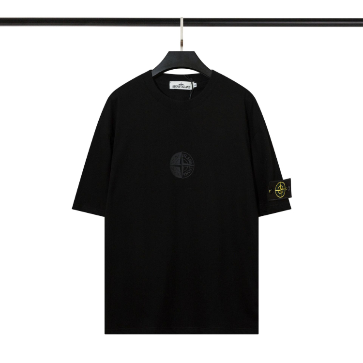 Stone Island double-layered black and white Tai Chi print short-sleeved T-shirt-5269
