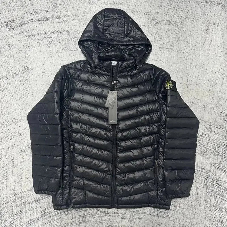 Stone Island hooded zipper stand collar patchwork design down jacket-4393