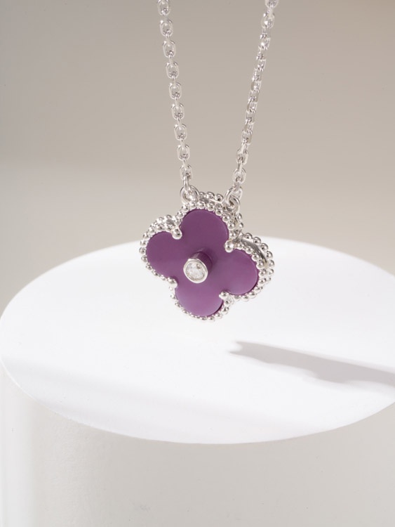 Van Cleef & Arpels Violet Stone Four-Leaf Clover Single Flower Diamond Necklace-3907