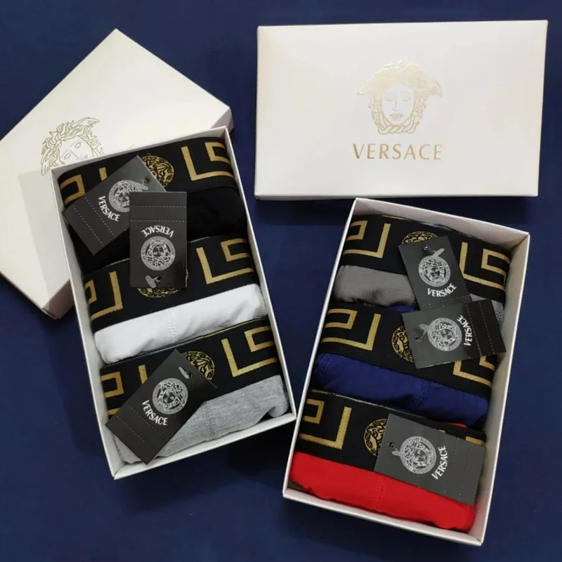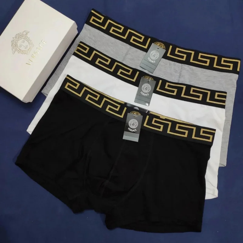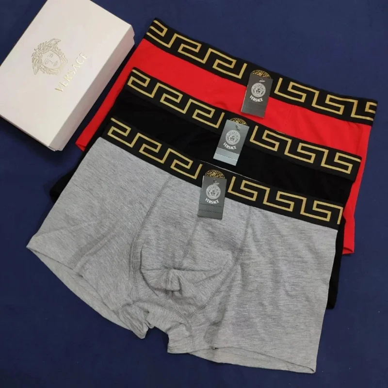 Versace Men's solid color fashionable underwear Stretch waistband embroidery boxer 3pcs(5 styles)-2363