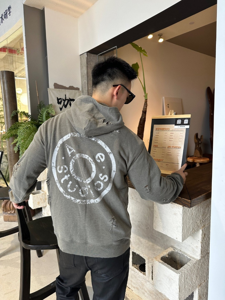 Acne Studios new zip-up distressed and ripped hooded sweatshirt-5445