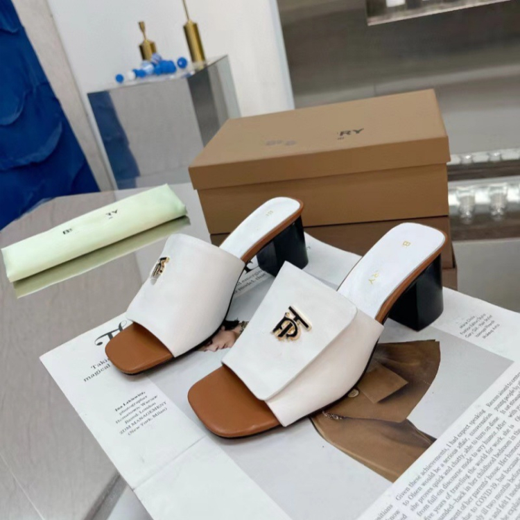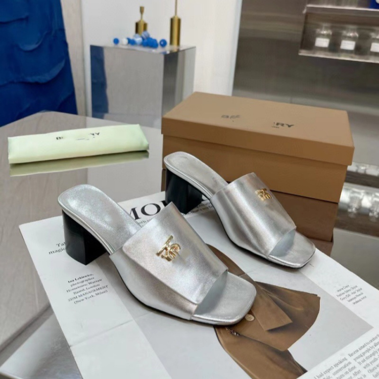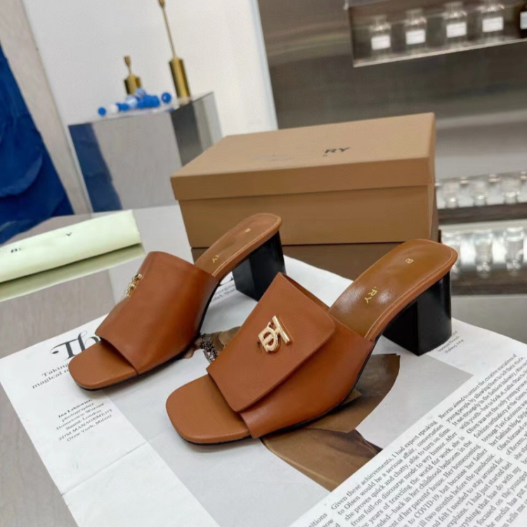Burberry new metal letter logo high-heeled slide sandals-5757