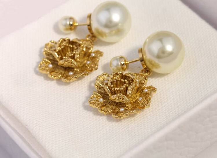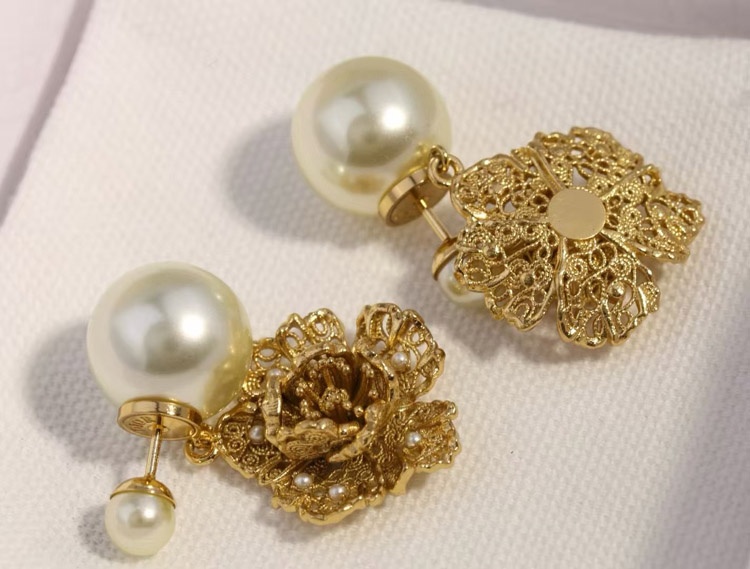 Dior large and small peony pearl earrings-3771