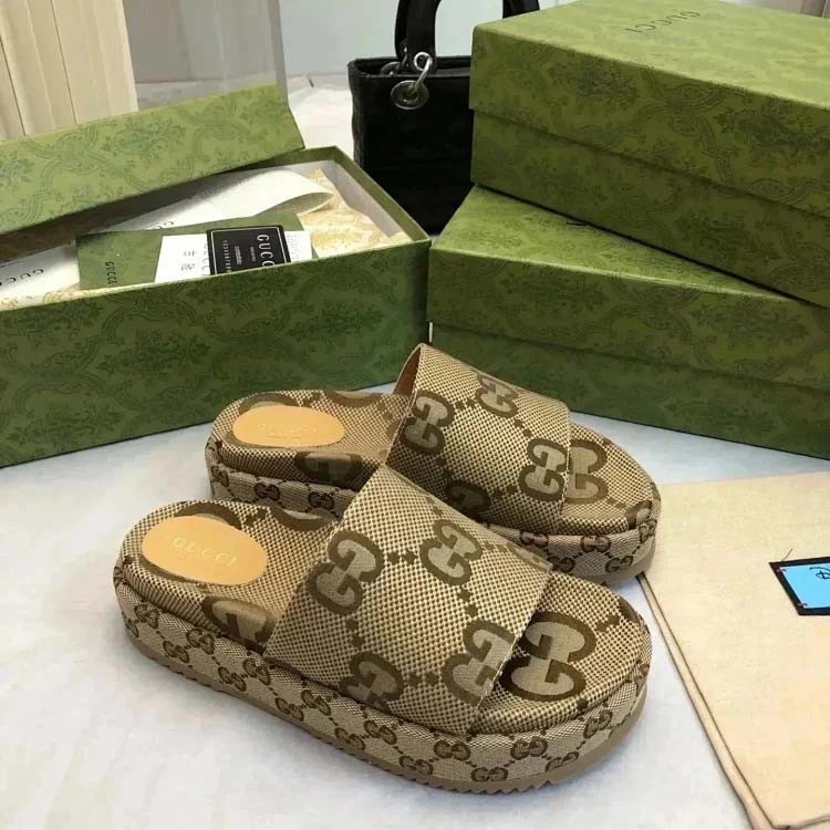 Home > GUCCI one-word new slippers embroidered thick-soled height-enhancing platform cake couples(37 styles)-2331