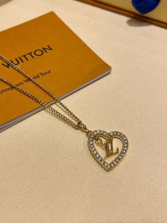 Home > Louis Vuitton LV gold letter hollow diamond heart necklace-3725