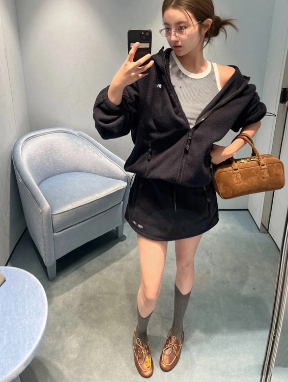Home > Miu Miu new collection set Embroidered logo fleece hooded zip-up jacket-5363
