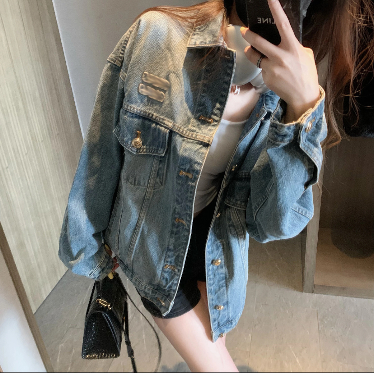 Miu Miu washed blue patchwork denim jacket-5946