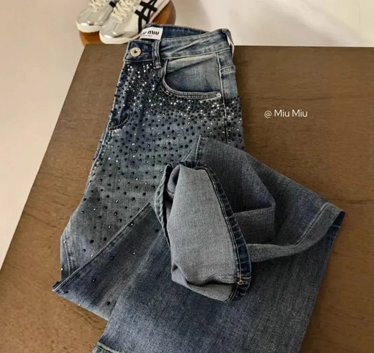 Miu Miu's new starry sky heavy rhinestone straight leg jeans-4929